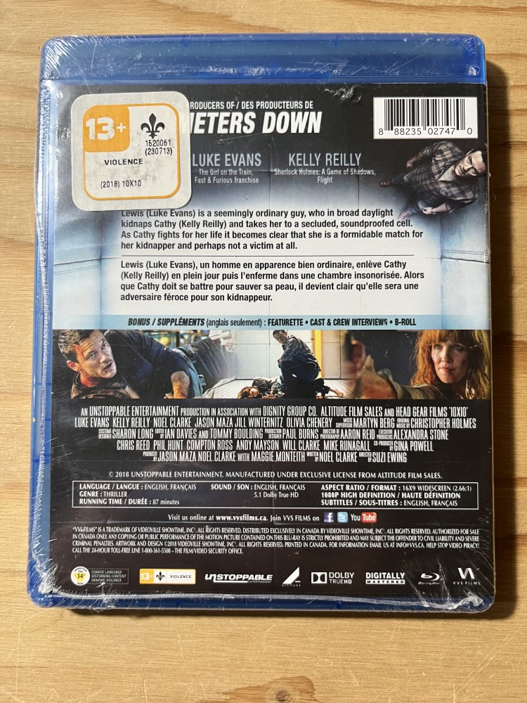 In this 2018 thriller directed by Suzi Ewing, a man abducts a woman and holds her captive in a soundproof 10×10 room, determined to extract a dark secret from her past. The film stars Luke Evans and Kelly Reilly.