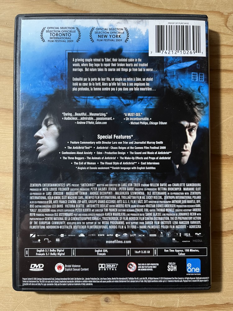 Directed by Lars von Trier, this 2009 experimental horror film follows a grieving couple who retreat to a cabin in the woods after the death of their child, where they experience strange visions and engage in increasingly violent and disturbing behavior. The film stars Willem Dafoe and Charlotte Gainsbourg.