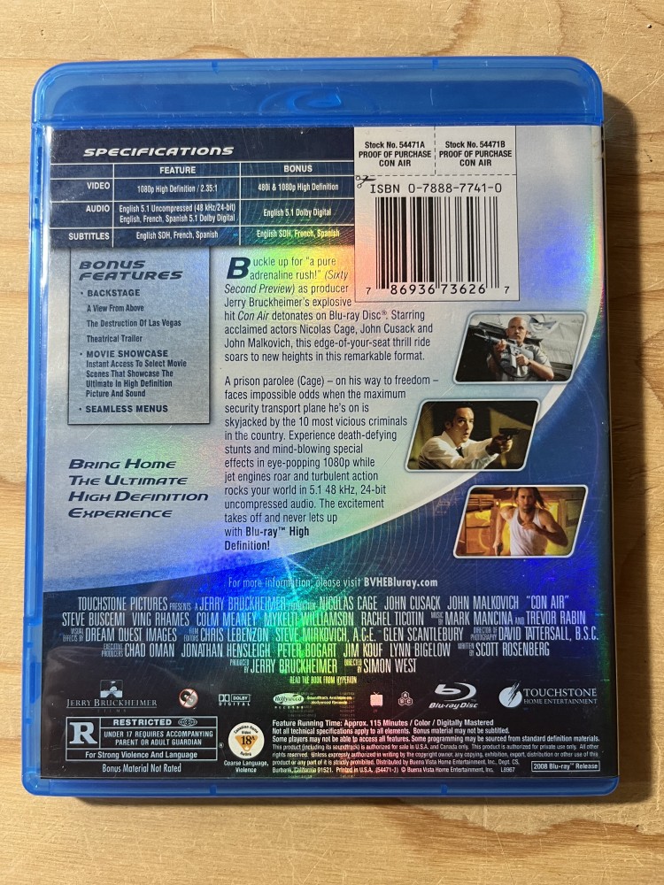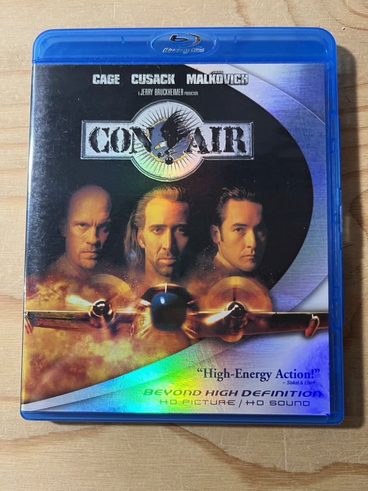 This 1997 action thriller, directed by Simon West, stars Nicolas Cage as Cameron Poe, a wrongly-convicted prisoner who is being flown home to his family aboard a transport plane for the criminally insane. The flight is hijacked by the convicts, and Poe must find a way to stop them. The film also stars John Cusack and John Malkovich.