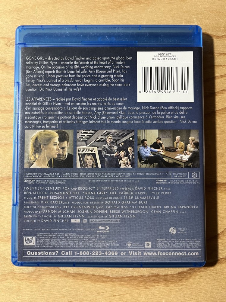 2014, Ben Affleck, Rosamund Pike, Directed by David Fincher. A husband becomes the focus of an intense media circus after his wife’s disappearance.