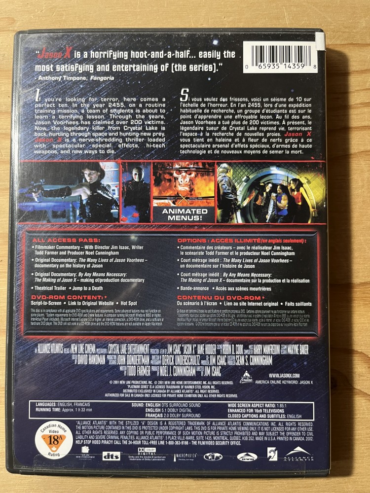 In this 2001 sci-fi slasher film directed by James Isaac, the infamous killer Jason Voorhees is cryogenically frozen and awakens in the 25th century aboard a spaceship, where he resumes his murderous rampage. It stars Kane Hodder and Lexa Doig.