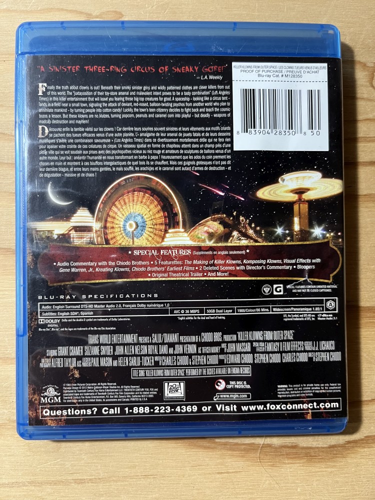 This 1988 sci-fi horror-comedy, directed by the Chiodo Brothers, depicts a small town’s invasion by aliens who resemble circus clowns. The cast includes Grant Cramer, Suzanne Snyder, and John Allen Nelson.