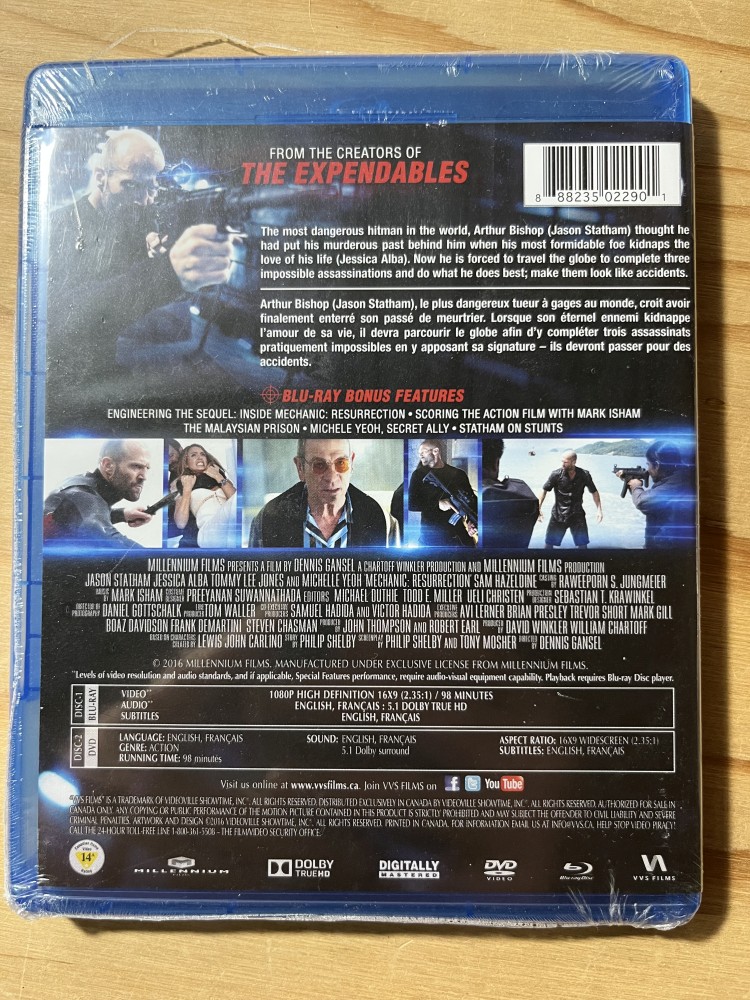 In this 2016 action thriller directed by Dennis Gansel, master assassin Arthur Bishop is forced out of retirement to complete a series of impossible assassinations. The film stars Jason Statham, Jessica Alba, and Tommy Lee Jones.