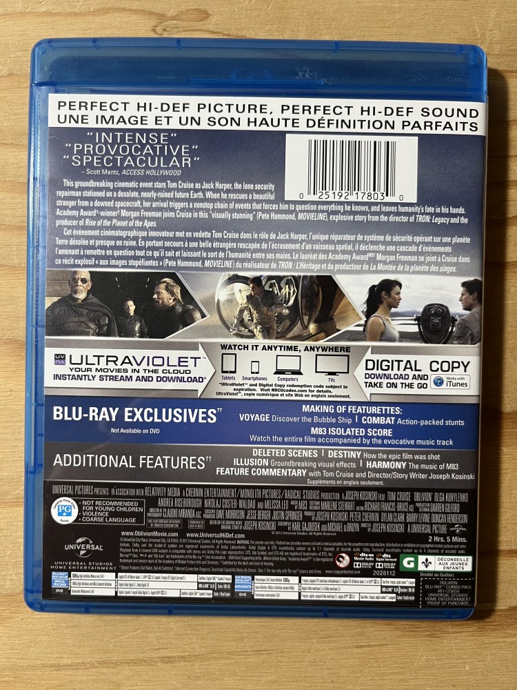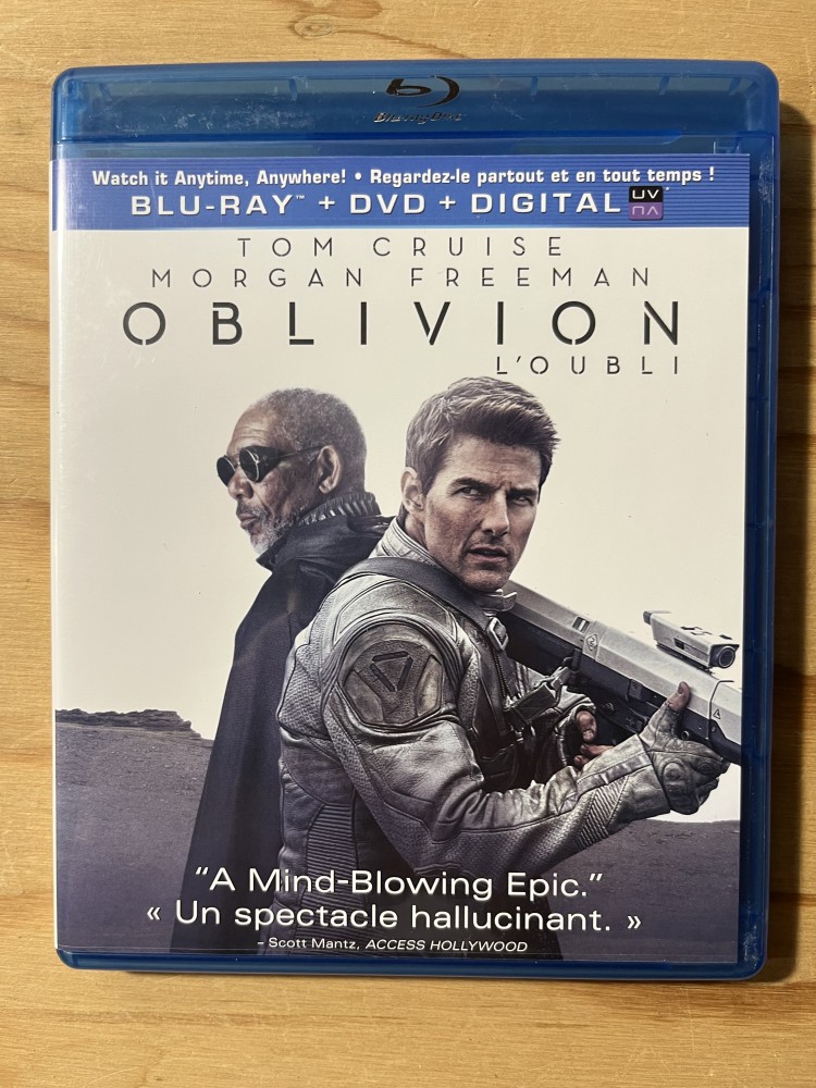 2013, Tom Cruise, Morgan Freeman, Andrea Riseborough, directed by Joseph Kosinski. A drone repairman stumbles on secrets about Earth’s fate and his own identity.