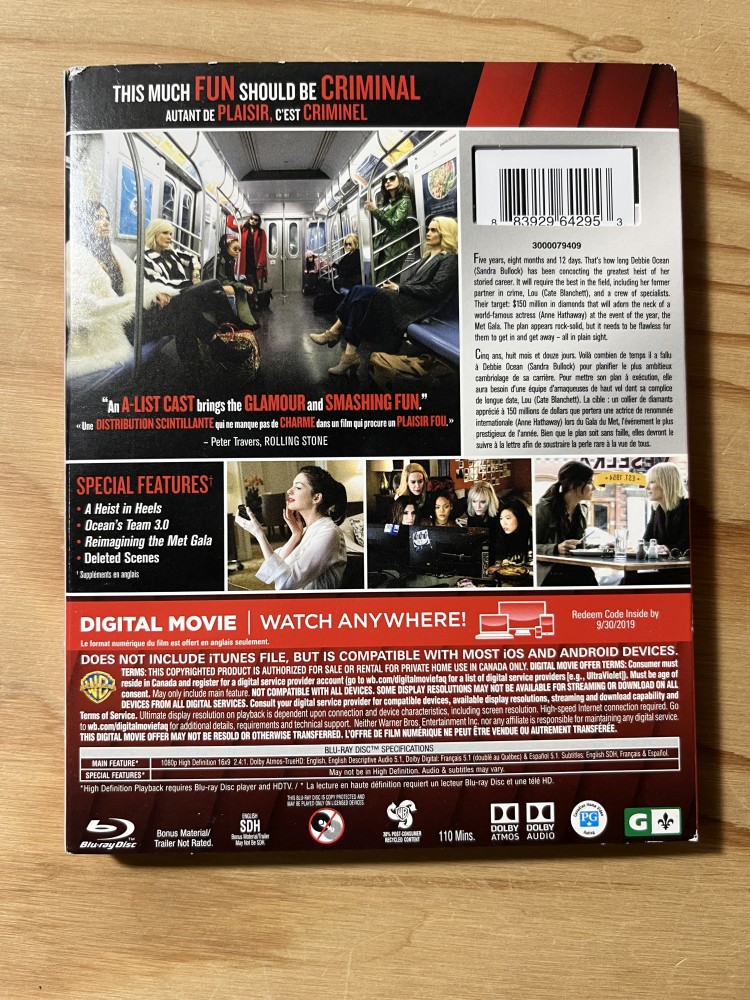 2018, Sandra Bullock, Cate Blanchett, Anne Hathaway, Directed by Gary Ross. Debbie Ocean gathers an all-female crew to pull off a heist at the Met Gala.