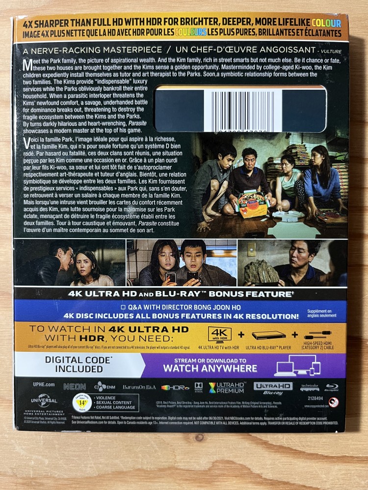 2019, Song Kang-ho, Directed by Bong Joon-ho. A poor family infiltrates a wealthy household; dark social satire.