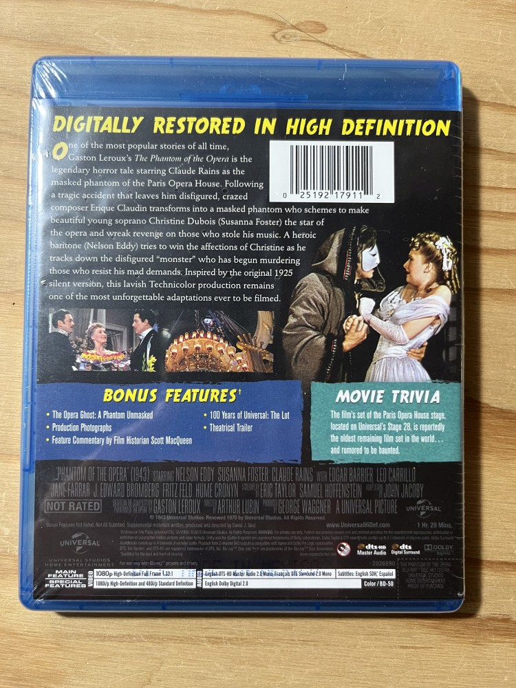 This 1943 horror classic, directed by Arthur Lubin, stars Claude Rains as a disfigured violinist who haunts the Paris Opera House, driven mad by his obsession with a young soprano. The film also features Nelson Eddy and Susanna Foster.