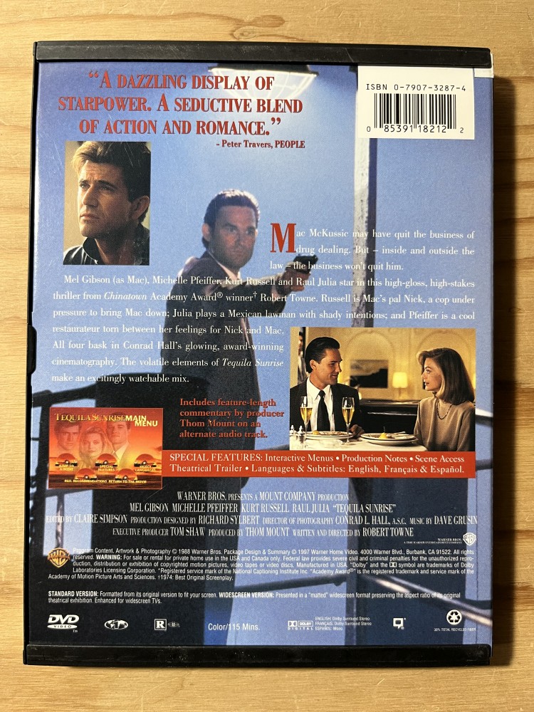 This 1988 crime thriller, directed by Robert Towne, involves a love triangle between a drug dealer trying to go straight, his best friend who is a cop, and a beautiful restaurant owner. It stars Mel Gibson, Michelle Pfeiffer, and Kurt Russell.